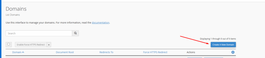 3. Pada halaman Domains, pilih Create A New Domain