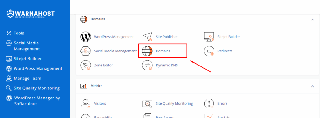 2. Pilih menu Domains di cPanel.